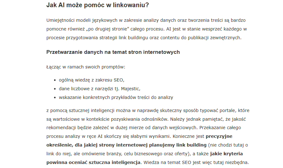 Przykład: Dobry tekst blogowy przygotowany z myślą UX będzie mieć wyróżniające się nagłówki i tekst podzielony na akapity. Informacje będą przekazywane w jasny sposób, a między akapitami pojawią się elementy wspierające konwersję (np. sprzedaż produktu czy usługi).